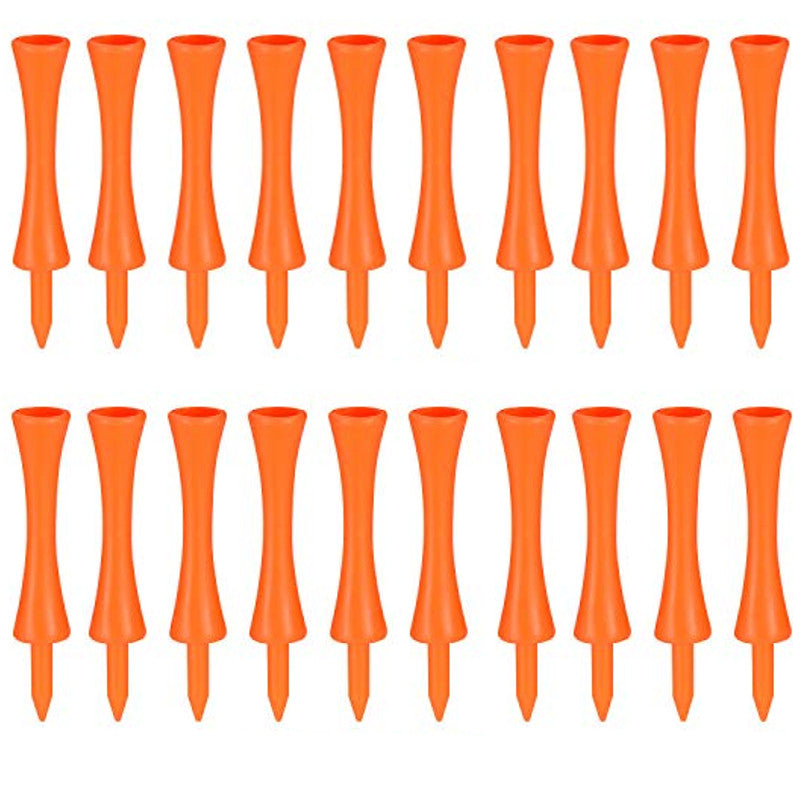 Plastic golf tee. Their particular shape allows you to always place the tee at the same height. They are 70mm long which makes them perfect for use from the starting pitch with the driver. The bright orange color makes it easy to find them. Pack of 20 pieces.