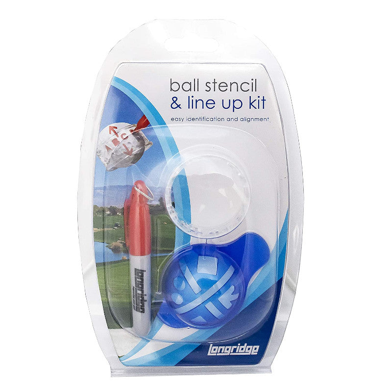 Package containing a marker, a stencil with the letters of the alphabet and another to be able to make lines and various symbols on the golf ball.